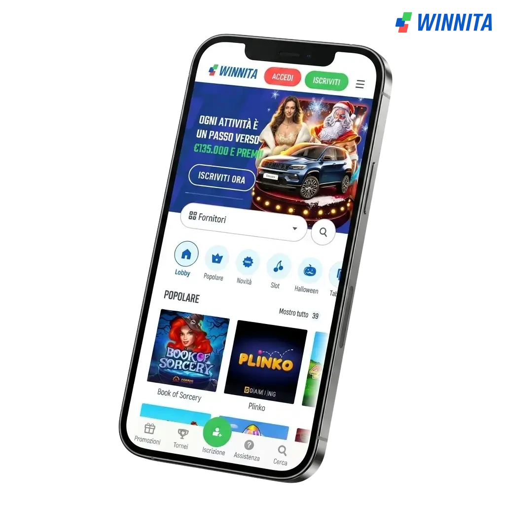 L’app Winnita è disponibile per Android e iOS ed è accessibile agli utenti italiani in modo legale. Tutte le funzionalità principali sono incluse: scommesse sportive, casinò, e metodi di pagamento come CartaSi, Satispay, Apple Pay, Mastercard, VISA, Postepay e Nexi.